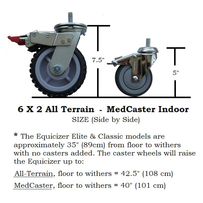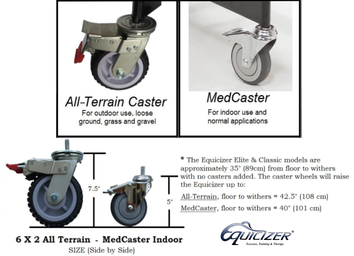 - Includes choice of 4” indoor medical grade casters, or for a small additional charge, our 6” All-Terrain Casters
