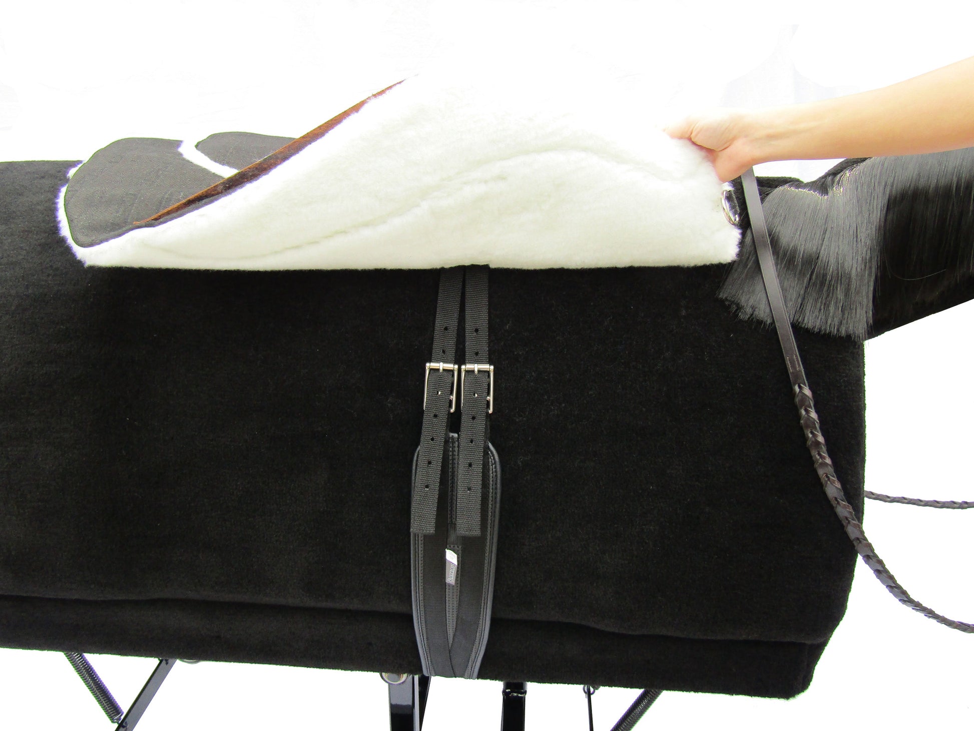 *Disclaimer: We do not encourage the use of stirrups with any bareback pad on a real horse and highly recommend removing them when using a bareback pad on a real horse. If used, the stirrups are merely to rest feet in and are not to be used for any weight bearing during riding or mounting.